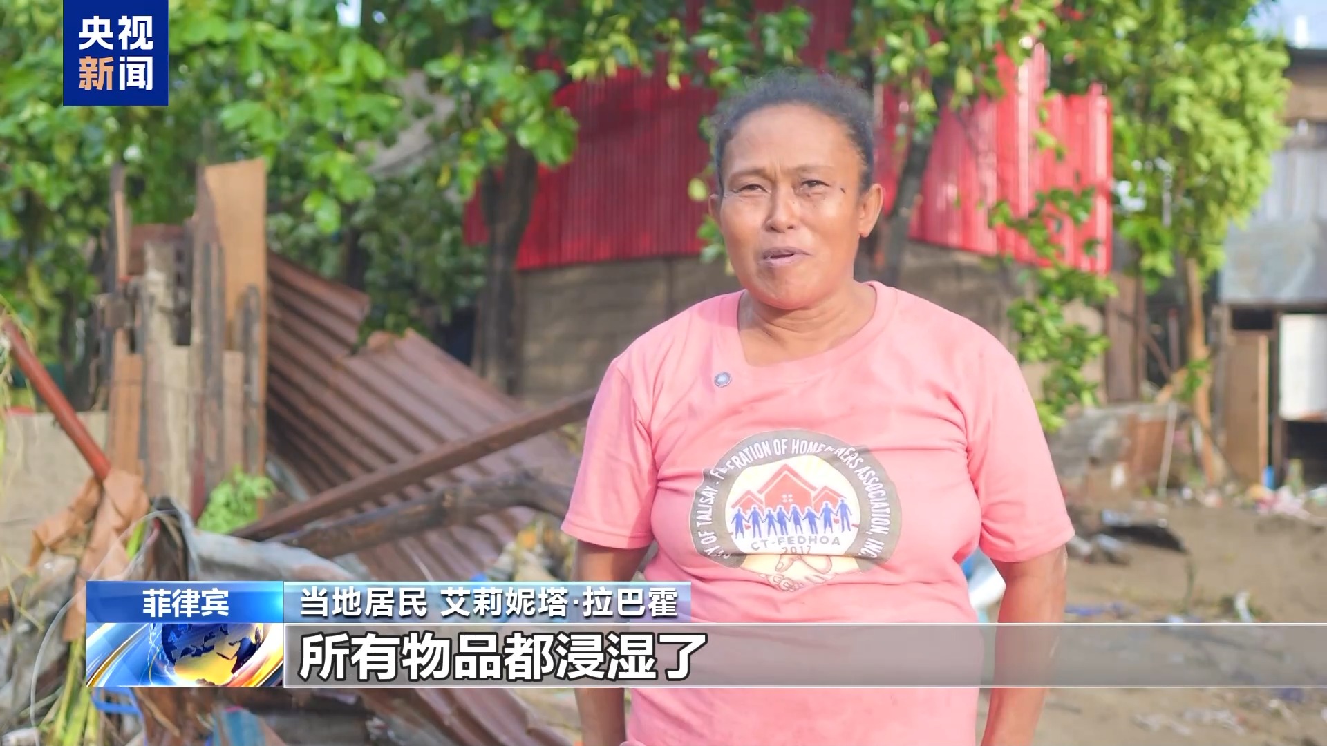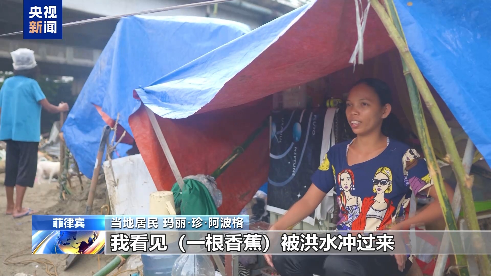 当地住户 玛丽·珍·阿波格:我看见(一根香蕉)被激流冲过来,就捡来当早餐吃了。这太难了,因为家里存的米等食品也被激流冲走了。咱们往日住在这里,但大部分屋子王人被激流冲毁了。