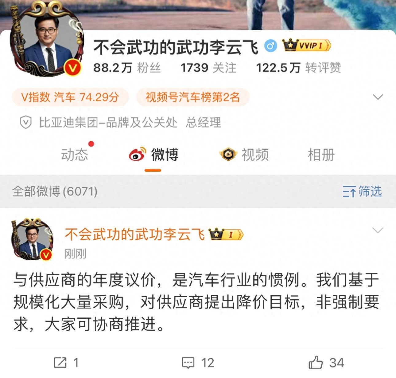 比亚迪品牌及公关处总司理:咱们基于范围化多半采购对供应商提倡降价决策 非强制条目