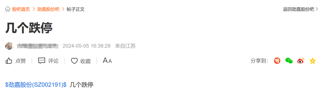 图片起原:劲嘉股份官网在劲嘉股份股吧,就有看到了音讯的股民问:“几个跌停?”